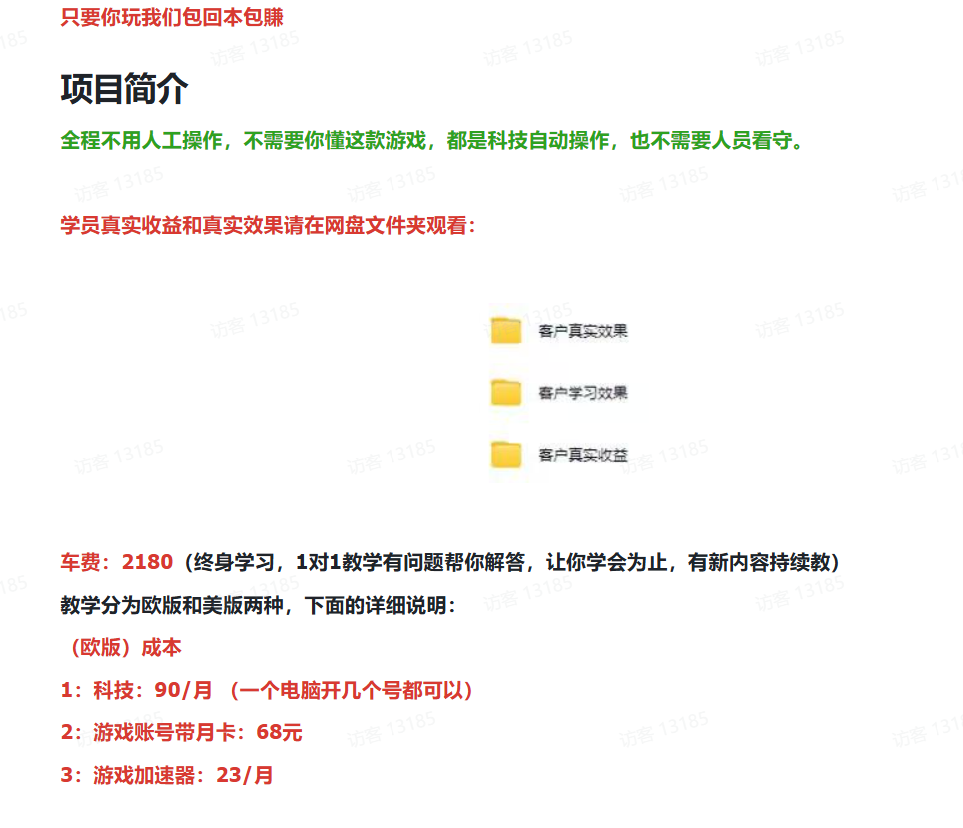 抛开法律风险不谈,该项目还需要考虑挂机服务器成本、电费成本、封号成本。